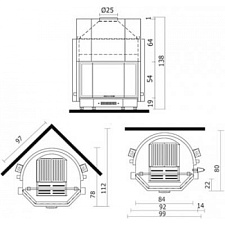 Отдельностоящая напольная модель. Состоит из основания изготовленного из дуба. Корпуса топливного блока. Два защитных термостойких стекла.