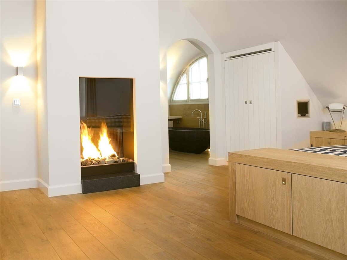 Газовая каминная топка Boley 841 в современном хай-тек стиле. Встраиваемая вертикальная модель. Превосходный вариант для маленьких комнат, нуждающихся в дополнительном обогреве.