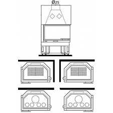 Корпус каминной топки выполнен из жаропрочной стали, колосники и патрубки из чугуна.