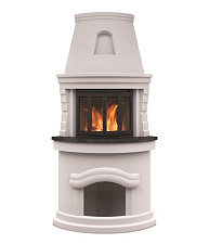 Изящный резной орнамент расположен по центру фронтальной поверхности портала прямо над очагом. Узкие колонны выполнены в классическом стиле и обрамляют зону очага. Узкая крышка придает каминокомплекту утонченный и в то же время строгий вид.